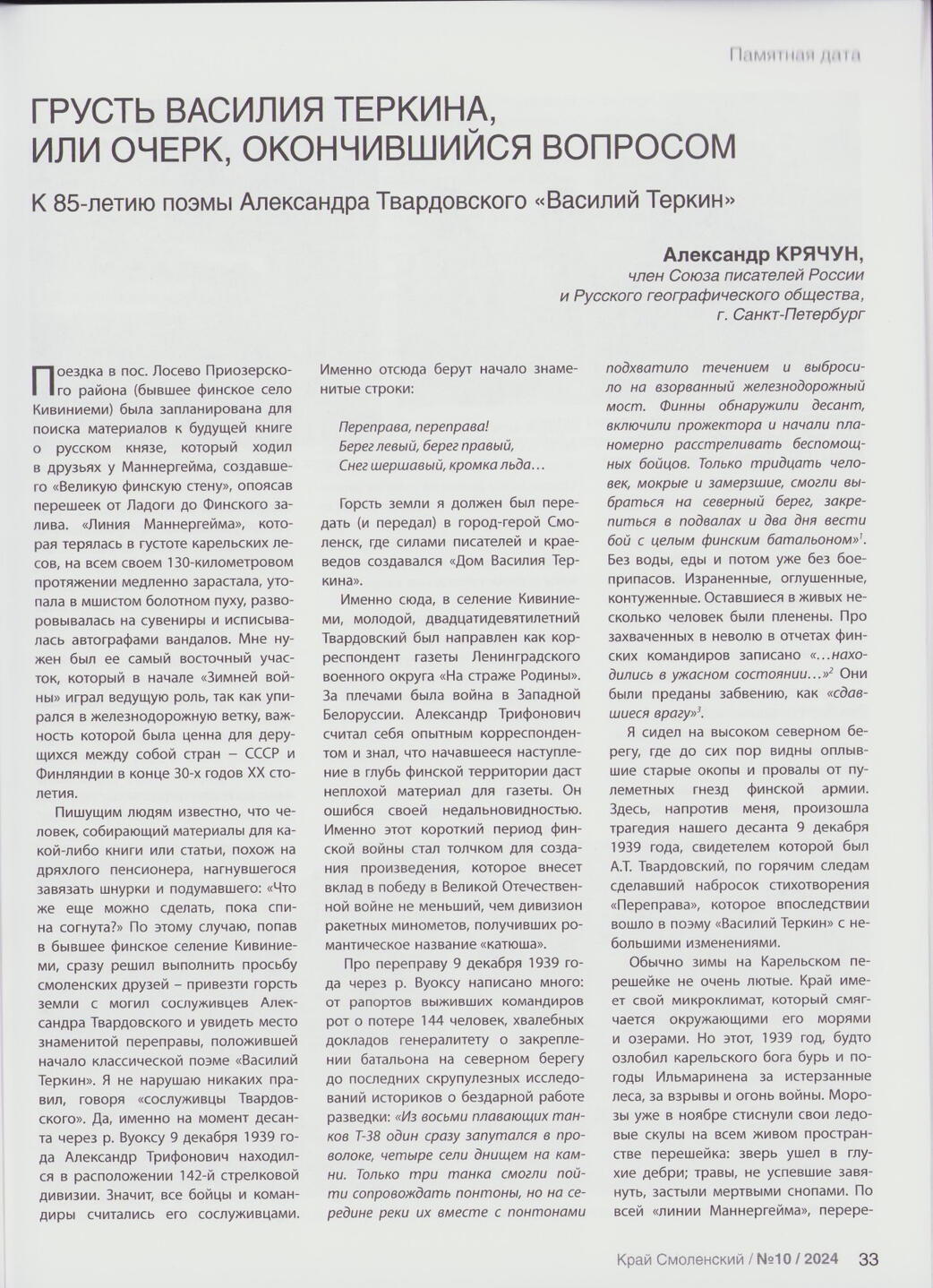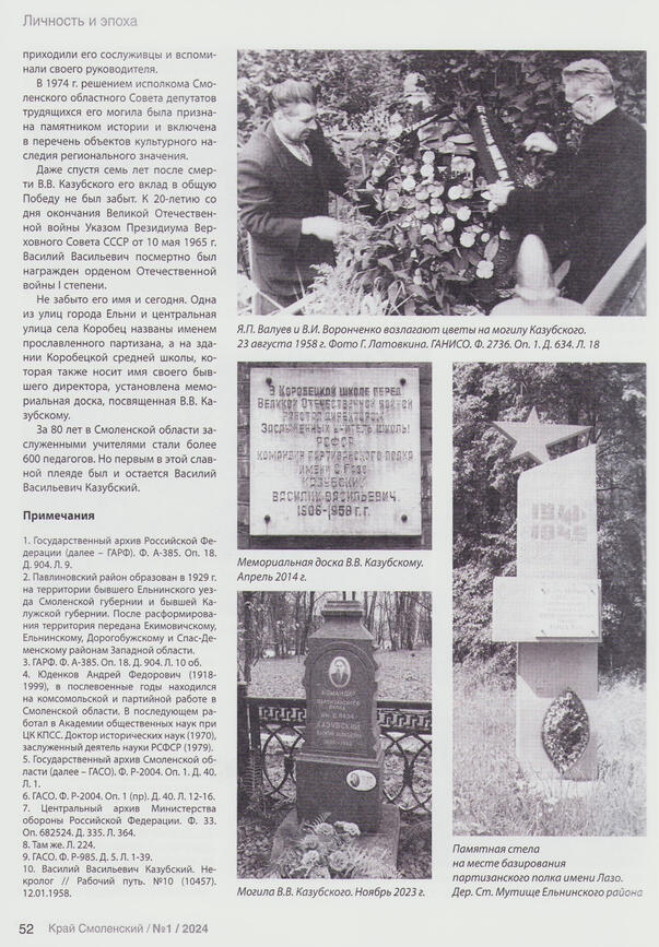 Журнал "Край Смоленский", основанный в 1991 году, является ценным источником информации для изучения истории Великой Отечественной войны на смоленской земле. На его страницах запечатлены трагические события оккупации, героизм советских воинов и партизан, а также мужество и стойкость мирного населения. Раздел "Эхо войны: голоса из архива журнала "Край Смоленский"" призван актуализировать и систематизировать наиболее значимые статьи, опубликованные в журнале за период с 2022 по 2024 гг. Представленные материалы, основанные на архивных документах, воспоминаниях очевидцев и результатах научных исследований, служат сохранению исторической памяти о Великой Отечественной войне и способствуют углубленному пониманию событий тех лет.